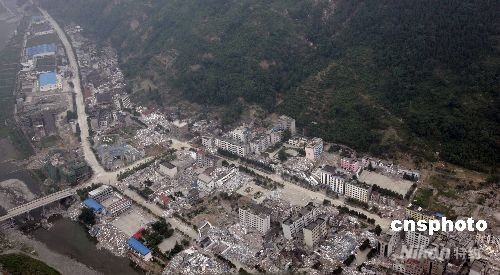 5月31日,在空中鸟瞰已成“死城”的北川县城。 中新社发 杜洋 摄