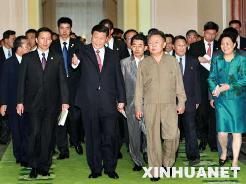 习近平表示,中朝传统友谊是两国老一辈领导人亲手缔造和培育,两国人民用鲜血凝成的。中朝两国人民始终相互理解、相互同情、相互支持、相互帮助,中朝友谊历经风雨、牢不可破。进入新世纪,中朝关系继续快速发展,有力地维护了两国共同利益,也为本地区和平与发展做出了积极贡献。不断巩固和发展中朝传统友好合作关系是中国党和政府坚定不移的战略方针。我们愿同朝方一道,继续本着“继承传统、面向未来、睦邻友好、加强合作”的精神,保持高层交往,深化经贸合作,搞好明年“中朝友好年”活动,就双方共同关心的地区和国际事务加强协调,使中朝关系在新形势下焕发出更大生机和活力。