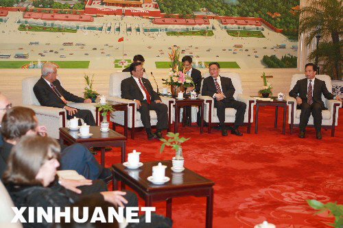 6月19日,全国人大常委会委员长吴邦国在北京人民大会堂会见出席第五届亚欧议会伙伴会议各代表团团长。 新华社记者鞠鹏摄