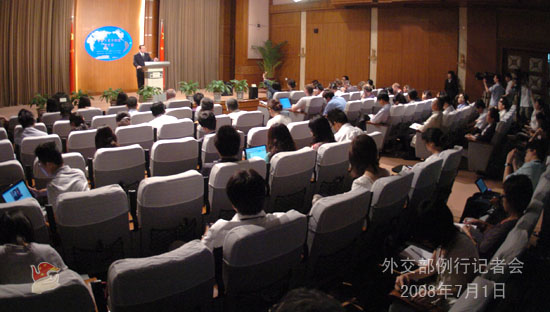 2008年7月1日下午,外交部发言人刘建超举行例行记者会,就胡锦涛主席将出席八国集团同有关国家领导人对话会议、六方会谈、津巴布韦局势、中央有关部门与达赖私人代表接触等答问。