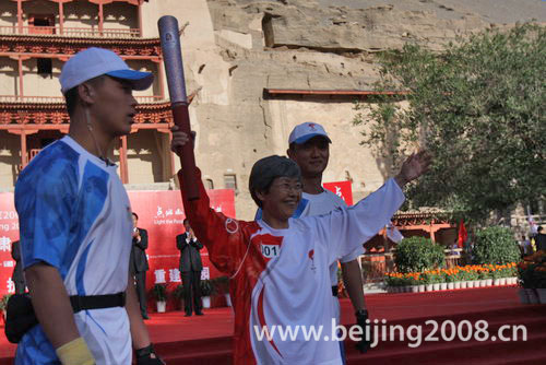 敦煌传递将有120名火炬手、26名护跑手参加,首棒火炬手是素有“敦煌女儿”之称的敦煌研究院院长樊锦诗。樊锦诗现任敦煌文物研究院院长,主要致力石窟考古、石窟科学保护和管理。在传递之前樊锦诗表示:“奥运火炬传递是一个交流和传递的过程,敦煌是中外文化交流的地方,也是文化传播的地方,奥运火炬的到来,传播了敦煌文明和中华文明,能传递奥运圣火我感到无比自豪。”