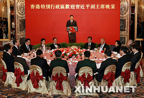 在欢迎晚宴上,特别行政区行政长官曾荫权发表了热情洋溢的欢迎辞。他代表香港市民和特区政府对习近平副主席的到来表示衷心的欢迎。