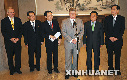 秦刚在当日晚间举行的记者会上介绍了团长会的有关进程。他说,两天来,六方团长一直在开会讨论,气氛良好,态度务实,节奏高效,总体进展顺利。团长会讨论了建立验证和监督机制的具体原则,以及向朝方提供经济能源援助问题,达成了一些具体共识。
