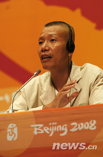 焰火大师蔡国强介绍有关情况。新华网 陈竞超 摄