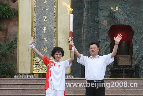 8月4日早上7点38分,北京奥运会圣火开始了在四川乐山市的传递,这是四川省境内传递的第二站。首棒火炬手是两度获得奥运会冠军、开创跳水界“高敏时代”的“跳水皇后”高敏。
