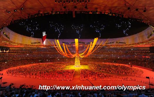 8月24日晚,北京奥运会闭幕式在国家体育场隆重举行,来自各国各地区的运动员、教练员和来宾共同庆祝北京奥运会取得圆满成功。这是圣火熄灭后,耸立在“鸟巢”中央的“祥云之树”。 新华社记者赵鹏摄