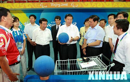 随后,习近平一行乘车来到北京理工大学体育馆和国家会议中心击剑馆,分别视察了盲人门球比赛和硬地滚球比赛场地、无障碍设施以及无障碍观赛平台等,热情看望了正在训练场训练的盲人门球运动员,同他们亲切交谈,勉励他们自强不息、奋勇争先,在残奥会上取得运动成绩和精神文明双丰收。