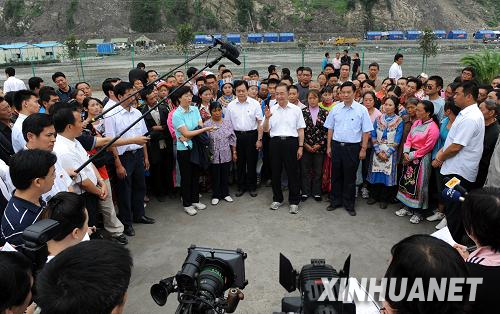 温家宝:同志们,今天,地震已经过去110多天了。我们在震中映秀镇举行一个简单的“记者招待会”,回答随行的记者同志们的问题。现在,请你们提问。