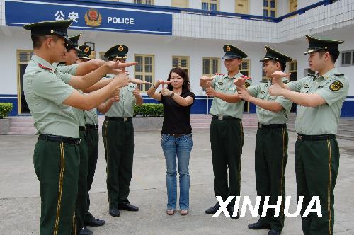 9月2日,福州边防官兵在向聋哑学校的手语老师学习基础哑语知识。随着北京残奥会的临近,福州市公安边防支队近日专门组织聋哑学校的手语老师为基层边防派出所民警教授手语知识,以更好地服务辖区聋哑残疾人群。新华社记者姜克红摄