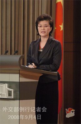 2008年9月4日,外交部发言人姜瑜举行例行记者会,主要就中国政府向联合国提交2007年度军事开支报告、南奥塞梯问题、朝鲜半岛核问题等答记者问。