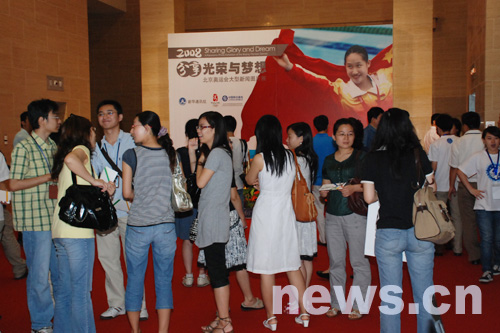 “分享光荣与梦想”——2008北京奥运会大型新闻图片展5日上午在中国美术馆开幕。图为开幕式前现场已经涌入大批观众。 新华网 张泳 摄
