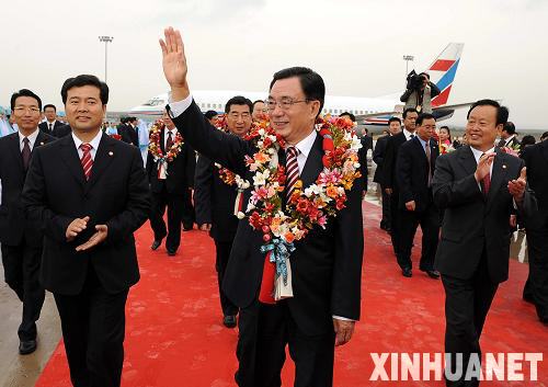 9月22日,以中共中央政治局常委、中央纪委书记贺国强为团长的中央代表团乘专机抵达银川,参加宁夏回族自治区成立50周年庆祝活动。新华社记者 高洁 摄