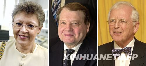 瑞典卡罗林斯卡医学院10月6日宣布,将2008年诺贝尔生理学或医学奖授予德国科学家哈拉尔德·楚尔·豪森(右)及两名法国科学家弗朗索瓦丝·巴尔-西诺西(左)和吕克·蒙塔尼(中)。这是三名诺贝尔奖得主的拼版照片。新华社/法新