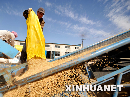 资料图片:农民在宁夏银川市贺兰县金贵镇金穗米业产销合作社销售稻谷(10月9日摄)。 时下正值宁夏秋收时节,宁夏银川市贺兰县金贵镇金穗米业产销合作社迎来众多销售稻谷的农民。该产销合作社采取水稻繁育、生产加工、销售为一体的管理模式,在农产品生产到销售的每个环节帮助农民获得最大效益。目前,金穗米业合作社共有300户农户加入,已形成产业化规模,产品畅销青海、新疆、甘肃、陕西等省区,极大地推动了农民的经济收入的增长。 新华社记者 王鹏 摄