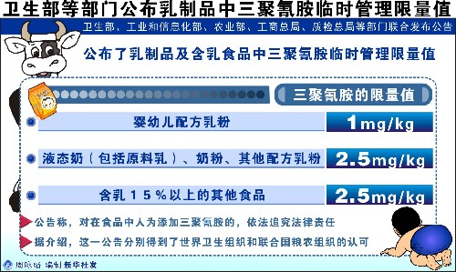 图表:卫生部等部门公布乳制品中三聚氰胺临时管理限量值 新华社发