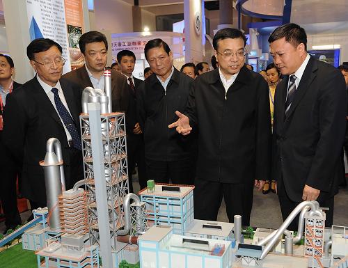 在工业节能、建筑节能等展区,李克强兴致勃勃地观看了太阳屋、抗震节能屋以及目前国内单机最大的2兆瓦风力发电机组等技术和设备。他指出,节能环保关键靠创新,要大力发展新能源和替代能源,狠抓科技成果推广应用,提高科技进步对节能环保的贡献率。还要通过抓紧理顺重要能源资源产品的价格关系、完善经济政策和法规标准,为节能环保提供制度保障。