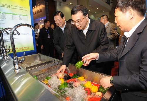 在展览现场,李克强停下脚步,与前来参观展览的群众亲切交谈。当了解到他们有些是从外地农村专门前来寻找节能环保领域的创业商机时,李克强十分高兴。他说,节能环保是个大产业,潜力巨大,前景光明,中小企业也可以在这个领域大有作为,可以促进创业、带动就业,值得大力开发和拓展。