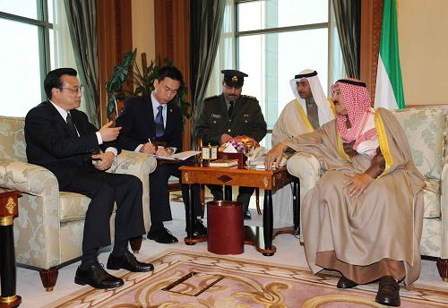 12月28日,科威特埃米尔(国家元首)艾哈迈德·萨巴赫在首都科威特城会见中国国务院副总理李克强。新华社记者 饶爱民 摄