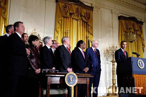2月6日,美国总统奥巴马(右一)在白宫发表讲话,宣布经济复苏顾问委员会正式成立。新华社记者张岩摄
