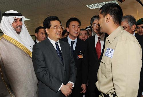 2月11日,正在沙特阿拉伯进行国事访问的中国国家主席胡锦涛在利雅得参观沙特阿拉伯阿卜杜勒-阿齐兹国王科技城(简称沙特科技城)。新华社记者 鞠鹏 摄