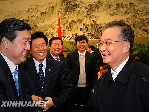 这是2月10日,温家宝与企业界代表交谈。新华社记者 刘建生 摄