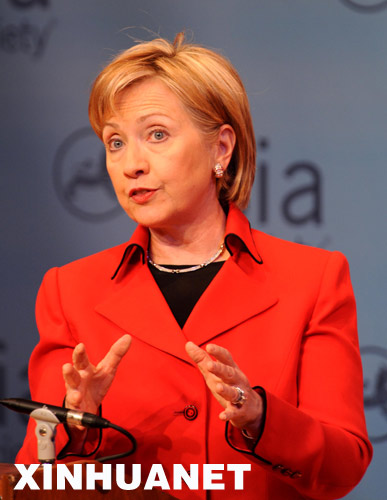 2月13日,美国国务卿希拉里在纽约亚洲协会总部讲话。当天,美国国务卿希拉里来到总部位于纽约的美国亚洲协会,在出访亚洲四国之前,就美国的亚洲政策等问题发表讲话,并接受亚洲协会成员和媒体的提问。新华社记者申宏摄