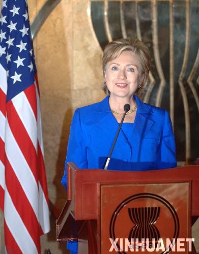 2009年2月18日,美国国务卿希拉里在东盟秘书处会见媒体。 2月18日,在位于印度尼西亚首都雅加达的东南亚国家联盟(东盟)秘书处,到访的美国国务卿希拉里在新闻发布会上回答记者提问。 新华社记者岳月伟摄