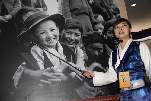 2月24日,《西藏民主改革50年大型展览》在北京民族文化宫开幕。新华社记者 汪永基 摄