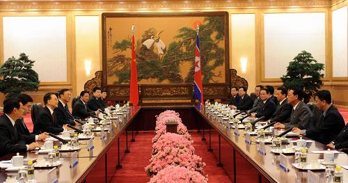 温家宝表示,中国党和政府始终从战略高度看待中朝关系,将一如既往地本着“继承传统、面向未来、睦邻友好、加强合作”的精神,与朝方一道不断扩大各领域友好互利合作,更好地造福两国和本地区人民。温家宝建议:一要保持双边高层交往,巩固两国关系的政治基础;二要深化务实合作,实现共同发展。中方愿与朝方加强协调,通过灵活多样的方式,推动在贸易投资、能矿开发和基础设施建设领域取得更多成果;三要密切人文交流,重点办好“中朝友好年”活动,增进两国人民的友谊,为双边关系发展注入新的活力;四要加强在重大国际和地区问题上的沟通与配合,积极推进六方会谈。中方愿为实现朝鲜半岛无核化继续发挥建设性作用。