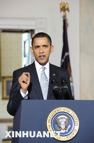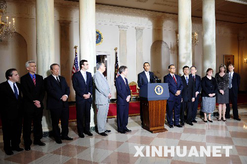 2009年3月30日 美国总统奥巴马在白宫就美国汽车业形势发表讲话 3月30日,美国总统奥巴马(中)在白宫就美国汽车业形势发表讲话。当天,奥巴马否决了通用汽车、克莱斯勒的改组计划,认为两公司必须进行更深入的改组,方能得到政府的其他援助款项。 新华社记者张岩摄