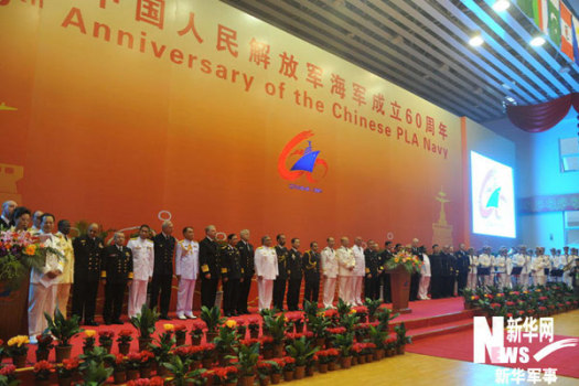 20日晚18点,庆祝中国人民解放军海军成立60周年多国海军活动正式在青岛开幕。各国海军代表团和来访舰艇官兵代表应邀出席开幕式。新华军事记者 李宣良 摄