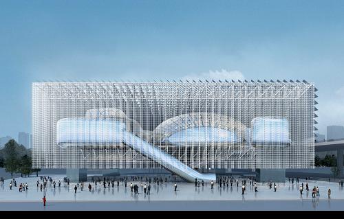 这是上海世博会上海企业联合馆效果图。4月25日,2010年上海世博会上海企业联合馆在世博园企业馆展区举行开工仪式。以“城市,升华梦想”为主题的上海企业联合馆,由上海市国资委下属的30多家大中型国有企业联合出资建造,是一座独具特色的生态智能建筑。它采用可循环利用的再生塑料和太阳能热水发电技术,场地范围内的雨水将得到回收,经过处理后作为场馆内的日常用水和“喷雾”。新华社发