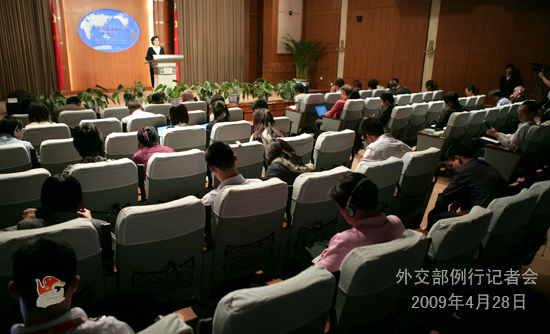 2009年4月28日,外交部发言人姜瑜举行例行记者会,主要就中日关系,中法关系及外交部就猪流感发布旅行提醒等答记者问。