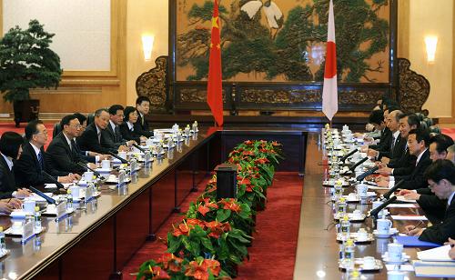 外交部长杨洁篪、国家发展和改革委员会主任张平、财政部部长谢旭人、环境保护部部长周生贤、中国驻日本大使崔天凯参加会谈。