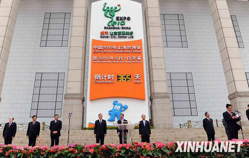 新华网北京5月1日电(记者车玉明)中国2010年上海世博会倒计时一周年暨计时牌启动仪式1日在天安门广场隆重举行。中共中央政治局常委、全国人大常委会委员长吴邦国出席并启动计时牌。他强调,中国政府将全力以赴做好各项筹办工作,期待着与世界各国朋友一道,在异彩纷呈的世博会上,感受文化创意,体验科技进步,交流发展理念,共享文明成果,凝聚建设和谐、幸福、美好明天的智慧与力量。