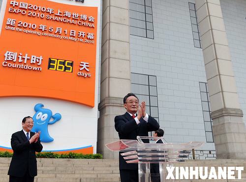 5月1日,2010年上海世博会倒计时一周年暨计时牌启动仪式在北京天安门广场举行。中共中央政治局常委、全国人大常委会委员长吴邦国出席仪式。新华社记者 李涛 摄