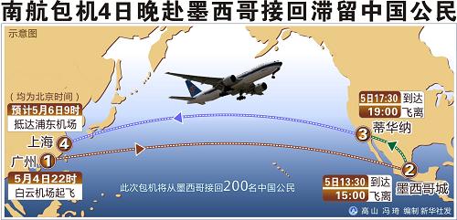 图表:南航包机4日晚赴墨西哥接回滞留中国公民 新华社发