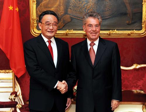 吴邦国说,中奥建交38年来,两国关系总体发展良好,各领域交流与合作不断深化,给两国人民带来实实在在的利益。他强调,中方高度重视发展与奥地利的关系,愿与奥方在相互尊重、平等互利原则基础上,加强政府、议会和政党之间的友好交往,增进相互了解和信任,深化各领域务实合作,密切在国际事务中的沟通协调,不断开拓双边关系新局面。