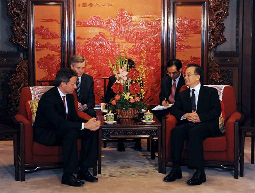 6月2日,中国国务院总理温家宝在北京中南海紫光阁会见美国总统特别代表、财政部长盖特纳。新华社记者 李涛 摄