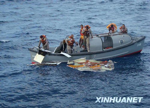 这张巴西空军6月7日提供的照片显示,巴西海军在巴西附近大西洋海域打捞失事的法航A330客机残骸。当日,巴西空军和海军又打捞上3具法航失事客机遇难者遗体和更多飞机残骸。新华社发