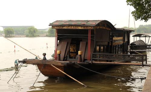 6月13日,“红船”停靠在嘉兴南湖湖心岛的岸边。新华社记者 黄深钢 摄