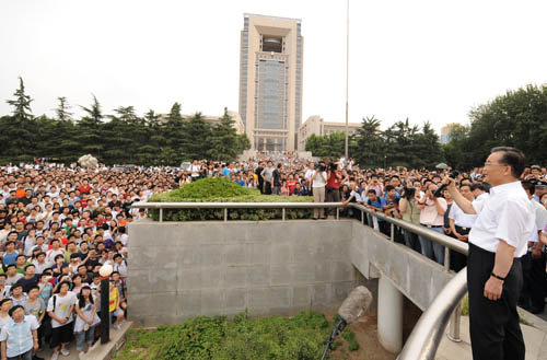 2009年6月5日,温家宝来到西安交通大学看望广大师生,并与该校毕业生代表座谈。(中国青年报)