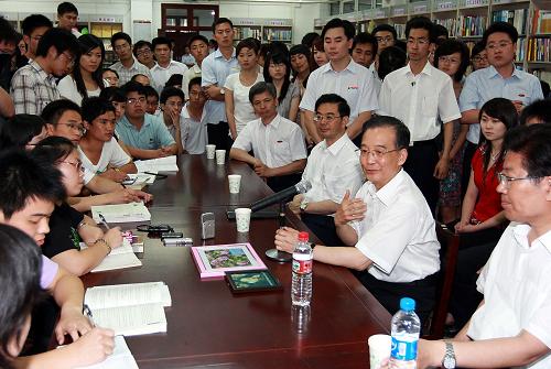 2009年6月13日,温家宝来到湖南大学看望广大师生,并与该校毕业生代表座谈。(中国青年报)