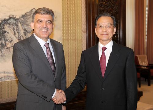 6月26日,国务院总理温家宝在北京中南海会见土耳其总统居尔。 新华社记者 马占成 摄