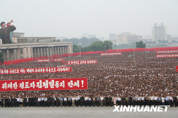 6月25日,在朝鲜战争爆发59周年之际,近10万名平壤市民在金日成广场举行大规模反美群众集会。1950年6月25日朝鲜战争爆发。朝鲜把这一天定为“反美斗争日”。新华社记者 高浩荣 摄