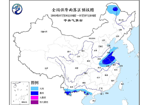 6日08时至7日08时,新疆北部、青藏高原中东部、甘肃南部、内蒙古东部、东北大部、华北东部、黄淮、江淮、江汉、江南西部和北部、华南大部、西南地区等地有小到中雨或阵雨,其中,内蒙古东北部、黑龙江西北部、山东南部和东部、河南南部、苏皖中北部、云南南部、广西南部等地的部分地区有大雨,云南南部、广西西南部、苏皖北部、山东南部、内蒙古东北部等地的局部地区有暴雨,降水量约有50~90毫米。内蒙古东部、黑龙江、吉林西部、辽宁西部、河北大部、北京、天津、青海大部、陕西东南部、山西南部、河南大部、山东大部、西藏东部、四川西部、重庆东部、湖北、安徽、江苏、上海、云南、贵州东部、湖南、江西、浙江、福建、广西、广东与海南北部等地将有雷暴天气,其中内蒙古东部、黑龙江西南部、吉林西部、辽宁西部、河北北部、北京北部、河南东南部、安徽大部、江苏大部、江西中北部、浙江中东部、云南南部与广西西南部等地有冰雹雷雨大风或短时强降水等强对流天气。内蒙古中东部、东北大部、华北北部等地有4~6级偏北或偏南风。黄海中部海域将有7~8级、阵风9级的大风,黄海南部海域将有6-8级偏南风。