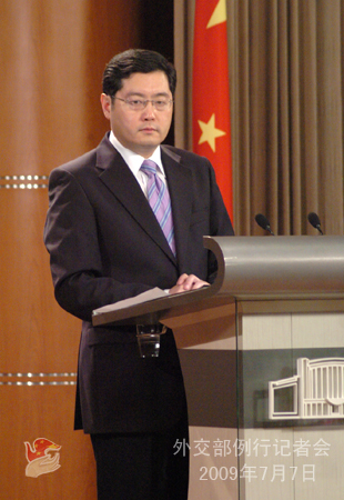 2009年7月7日,外交部发言人秦刚举行例行记者会。答问如下: