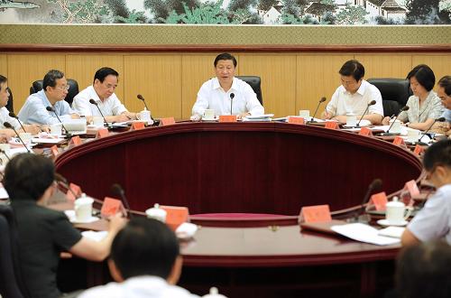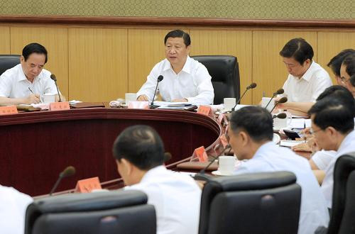 7月21日,中共中央政治局常委、中央书记处书记、国家副主席、中央深入学习实践科学发展观活动领导小组组长习近平,主持召开中央深入学习实践科学发展观活动领导小组第九次会议并讲话。新华社记者 马占成 摄