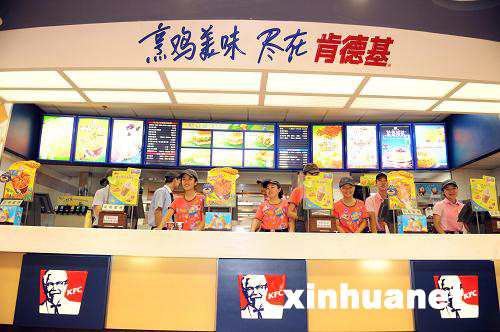 7月23日,肯德基乌鲁木齐国际大巴扎店员工微笑欢迎顾客。当日,自乌鲁木齐“7·5”事件后闭店17天的肯德基乌鲁木齐国际大巴扎店重新开门营业,接待中外顾客。新华社记者沙达提摄