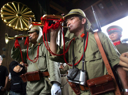 日本男子身穿日本旧式军服,参拜供奉有二战甲级战犯的靖国神社。路透社